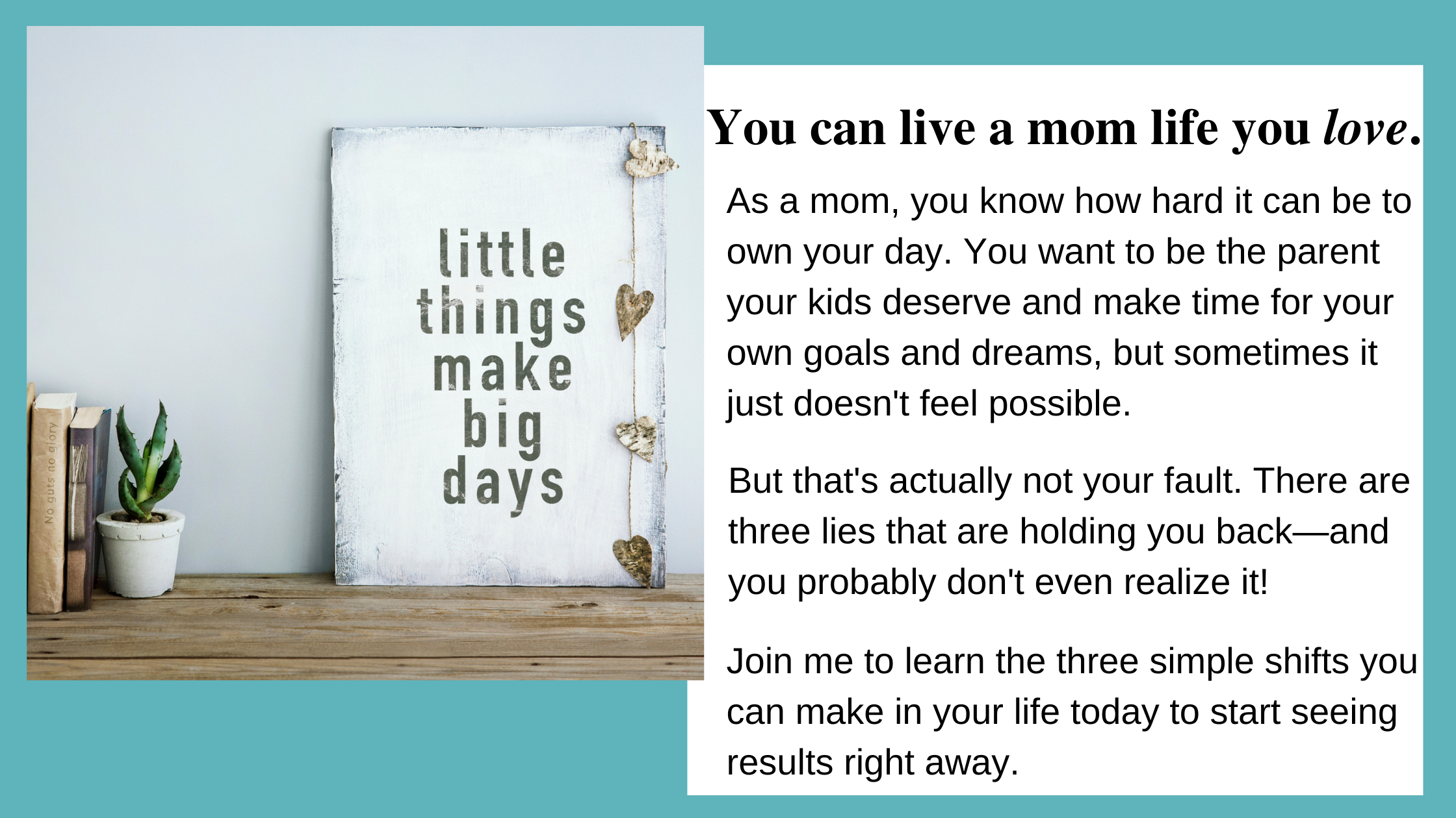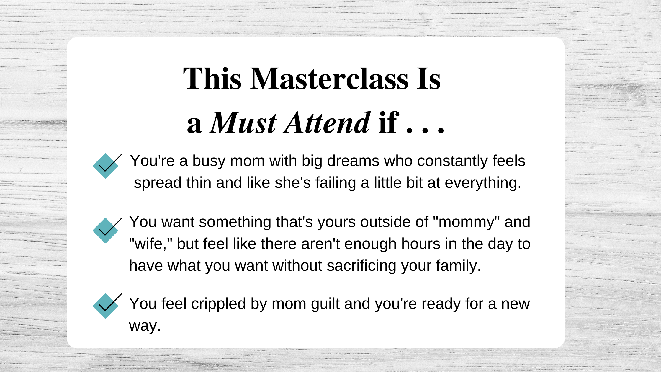 This brand new masterclass is the culmination of everything I've learned from being a mom in survival mode who wanted to own her day so she could go after her dreams and be the mom her kids deserve.